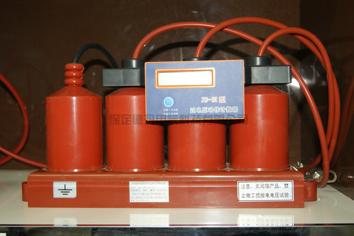 JS-Ⅲ型過電壓動作計數(shù)器是對產(chǎn)品工作狀況進(jìn)行實(shí)時及累計計數(shù)的裝置。與圖2、圖7、圖11所示6-10kV三柱、四柱式過電壓保護(hù)器和三相六柱式過電壓保護(hù)器配套使用。它可以詳細(xì)監(jiān)視所保護(hù)線路的狀況,預(yù)知事故前異常情況,達(dá)到分析異常動作原因,預(yù)防事故發(fā)生的作用。