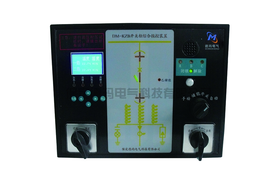DM-KZB開關柜智能操控裝置集成了一次回路模擬圖顯示斷路器狀態(tài)、開關狀態(tài)、接地刀狀態(tài)、彈簧儲能狀態(tài)顯示,高壓帶電指示,高壓帶電閉鎖控制及環(huán)境溫濕度控制等多種功能于一體,各種功能可自由組合。另外該系列產(chǎn)品采用了單片機技術實現(xiàn)對開關柜中各種元件工作狀態(tài)的采集、除濕加熱控制與加熱回路故障診斷;可同時對兩路溫度和濕度信號實時測量、控制,實現(xiàn)被測環(huán)境的溫濕度自動調(diào)節(jié);同時采用軟件核準技術補償溫濕度漂移記數(shù)誤差和元器件標稱誤差,測控精度高;具有人體感應帶電提示、語音防誤提示等功能,安裝、使用、維護簡單方便。